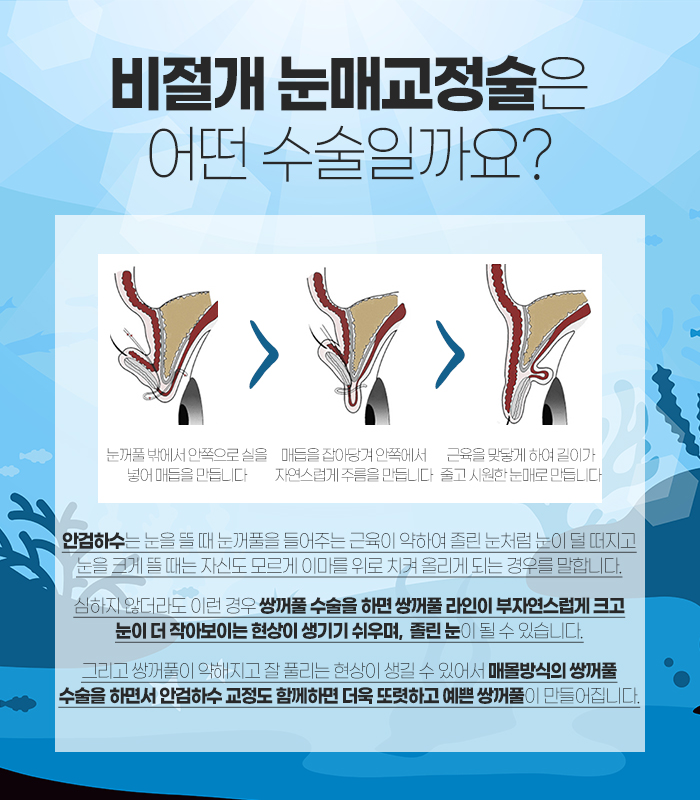 그래서 다음과 같은 경우에 분당쌍수 유명한곳 등을 찾아 받고자 하시는 분들이 많은 비절개 눈매교정입니다.